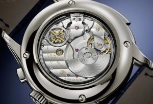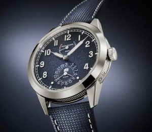 Set on a textured dial in deep blue, a power-reserve indicator shows the amount of energy left as the self-winding watch winds down over a guaranteed period of eight days. Eagle-eyed observers will notice that there are actually nine segments on the power-reserve arc: This is because the buy replica watches will continue operating on the ninth day, but becomes less accurate, as amplitude begins decreasing at this point.
